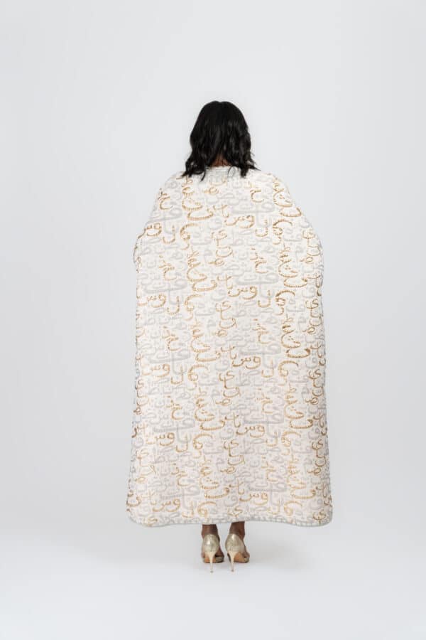 Experience the artistry of the Aria Cape. This timeless classic is a modern masterpiece, designed from a luxurious jacquard and adorned with elegant back calligraphy.