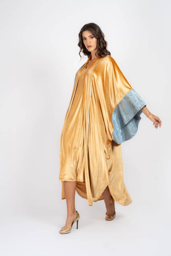 A timeless piece with a contemporary twist. The City Lights Abaya combines the luxury of velvet with the intricate detail of jacquard sleeves for a truly unique look.