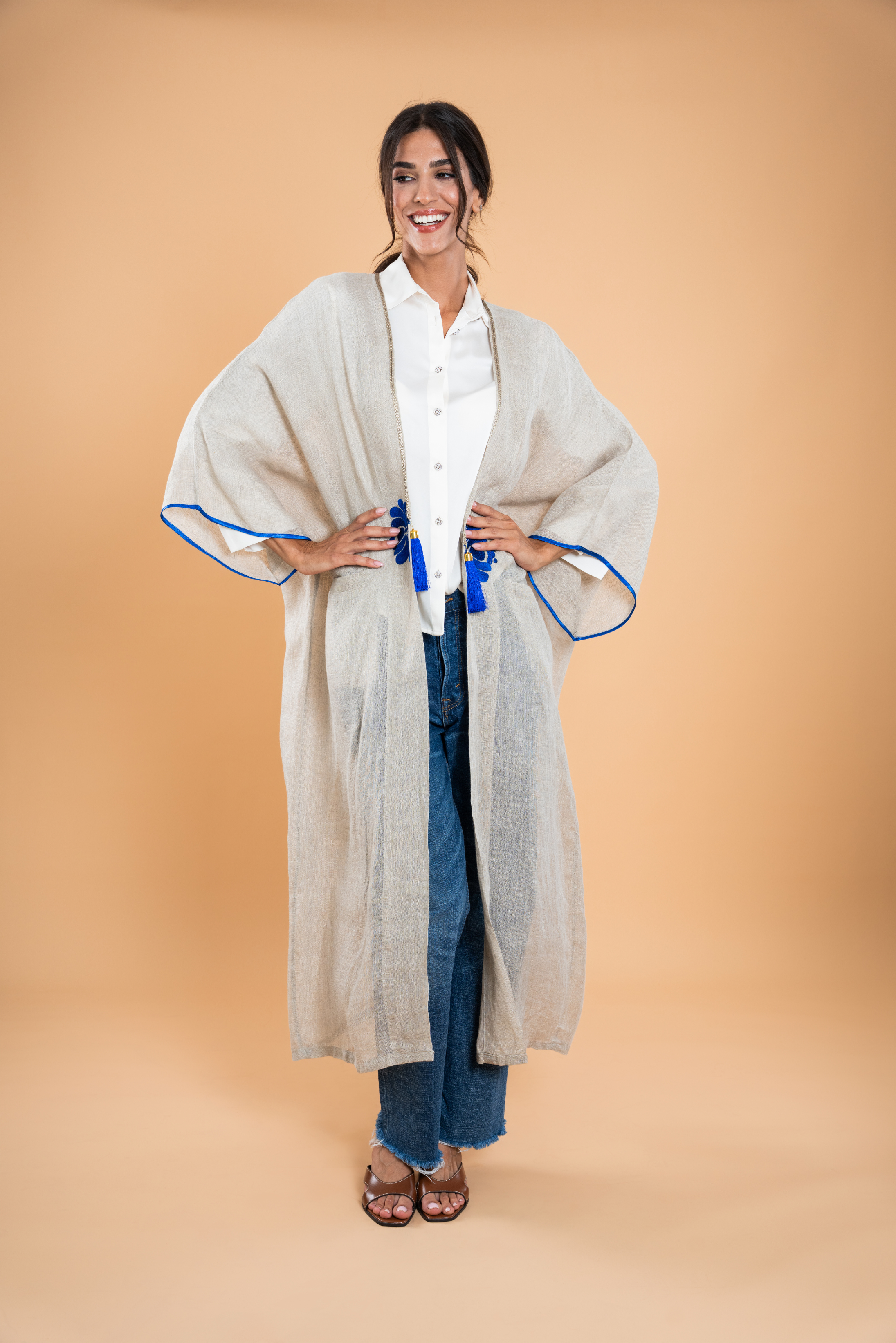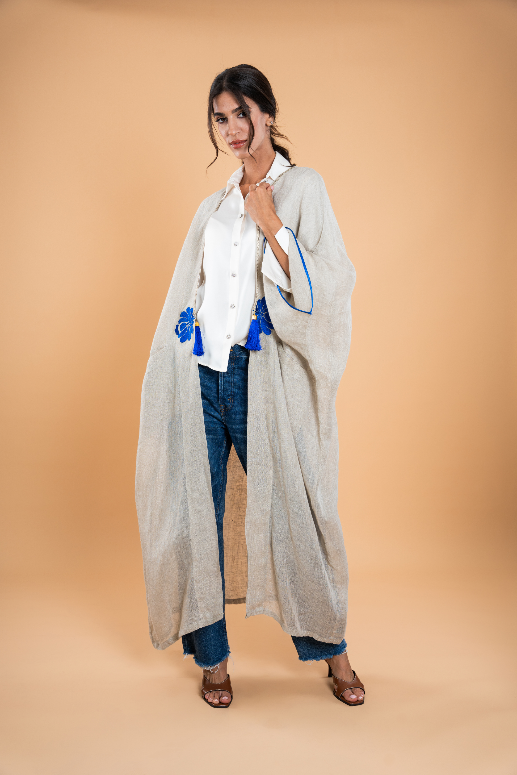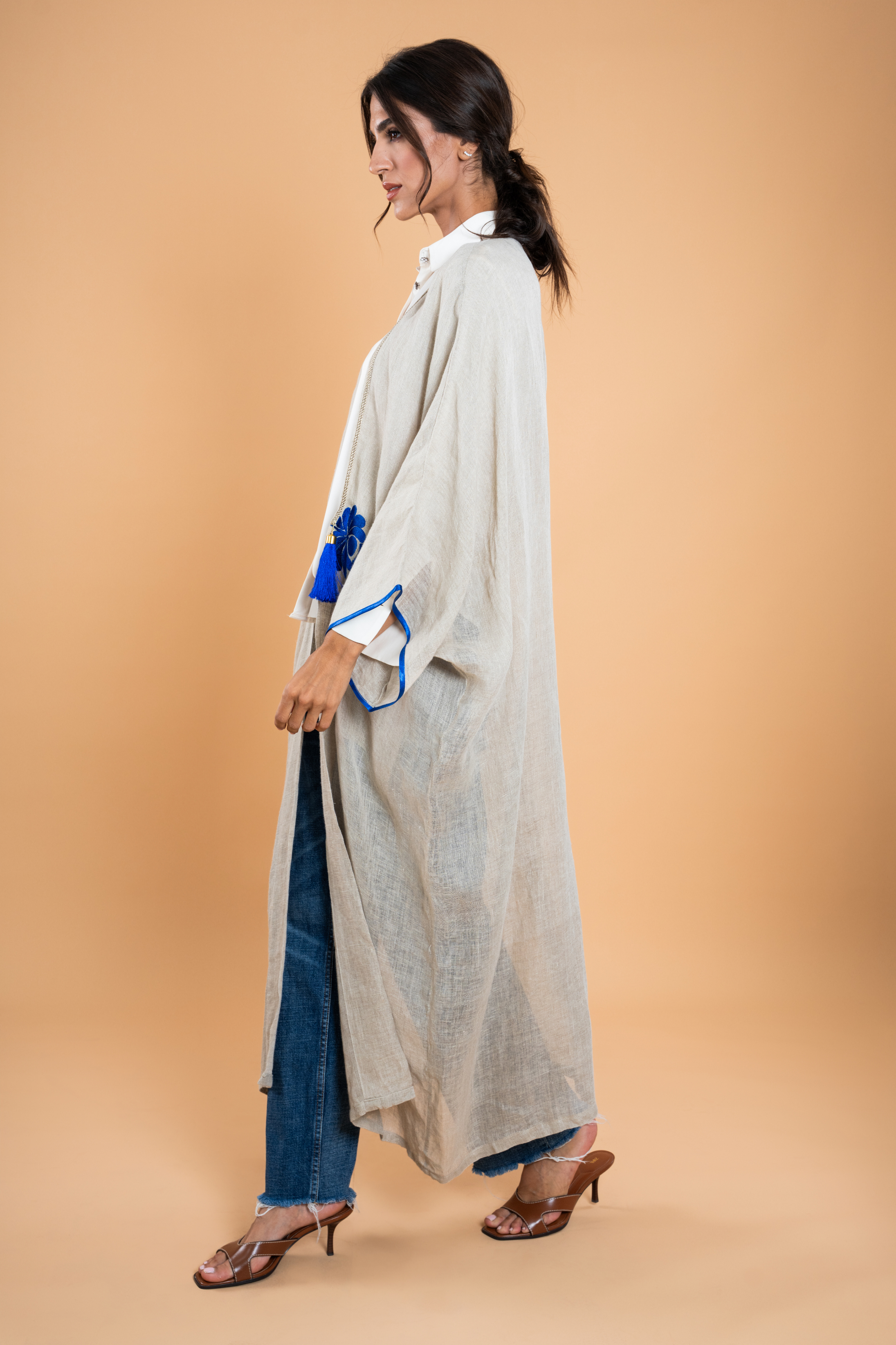 Fakr Kaftan: Woven in pure linen, this kaftan embodies quiet pride — simple lines, natural flow, and timeless elegance.