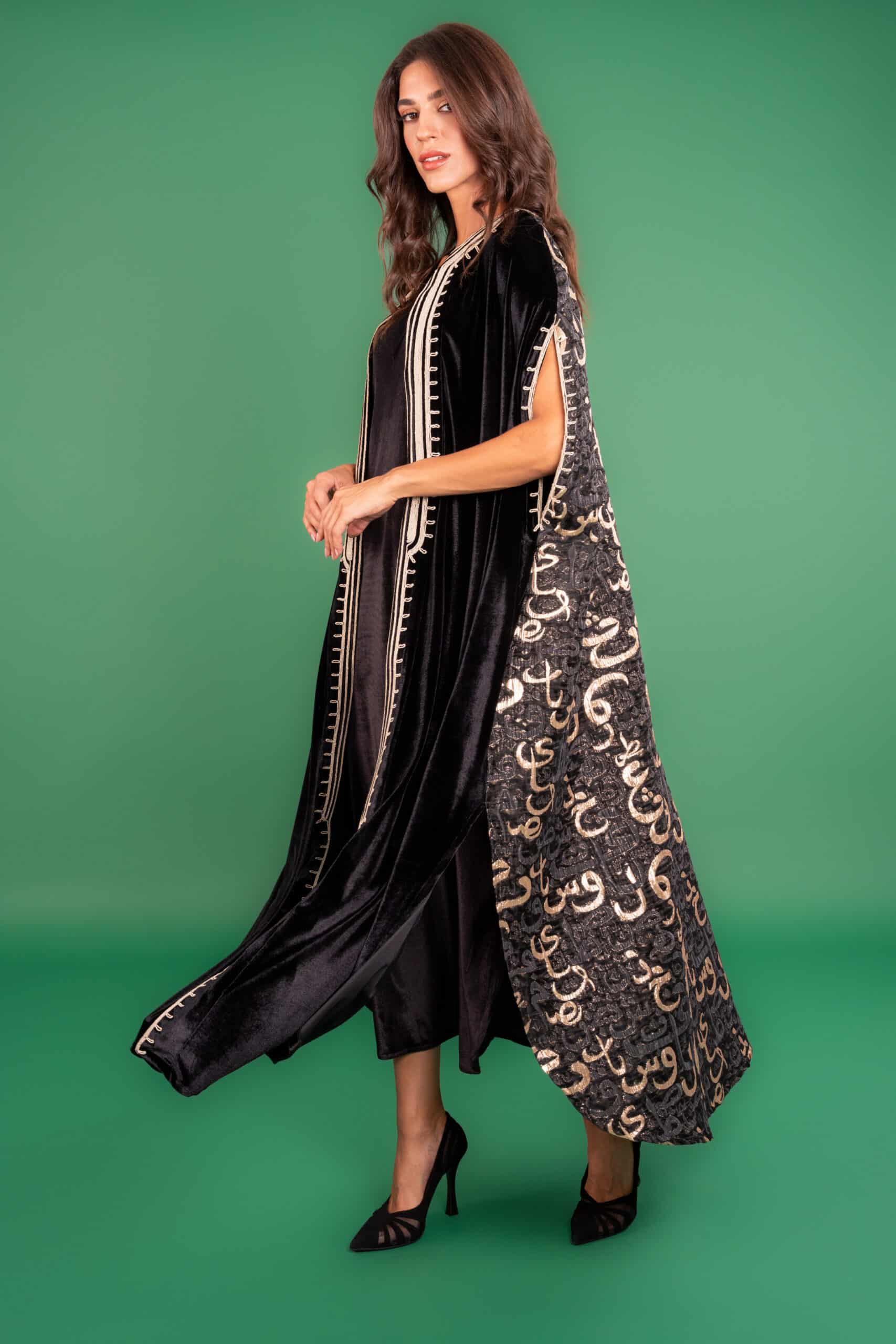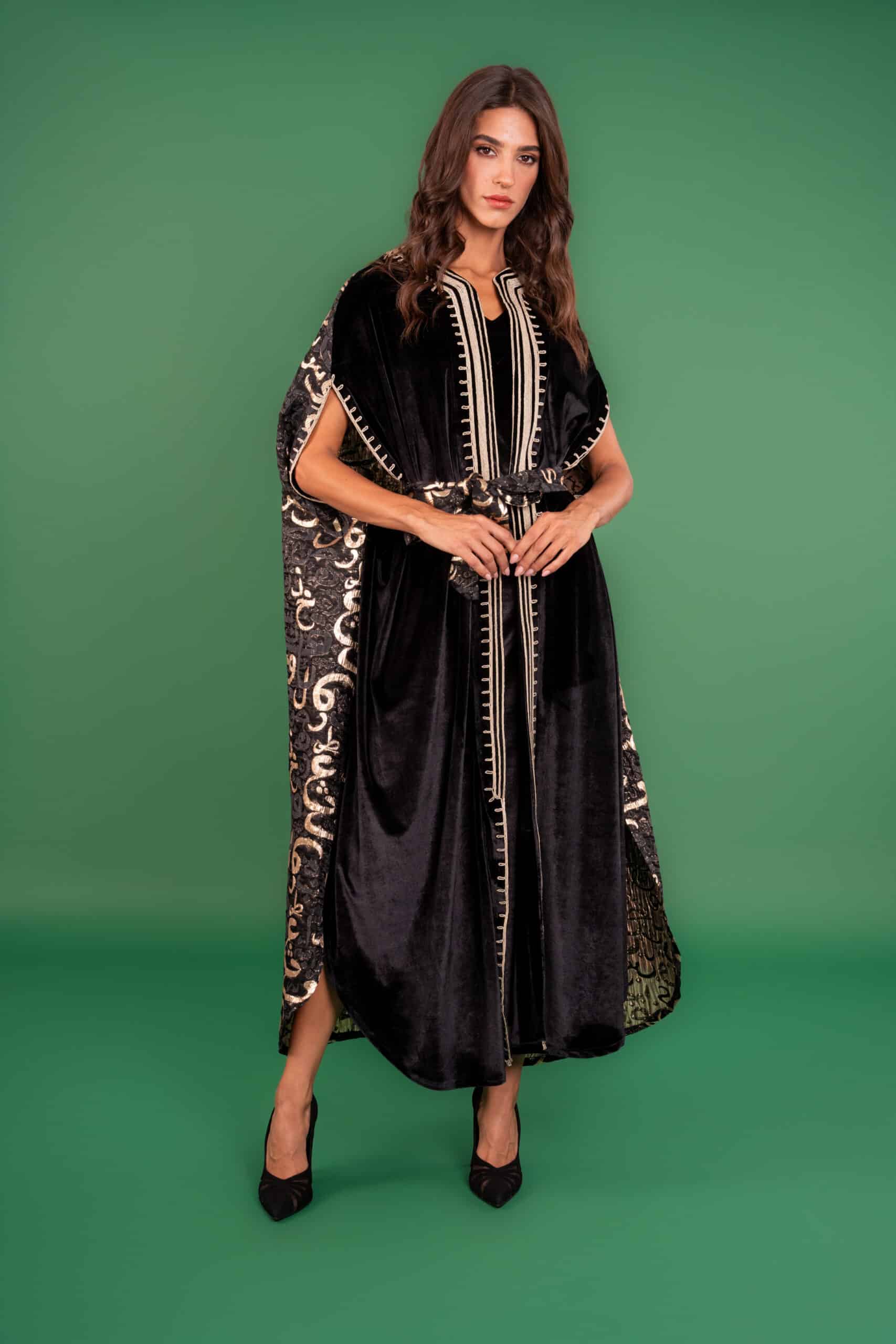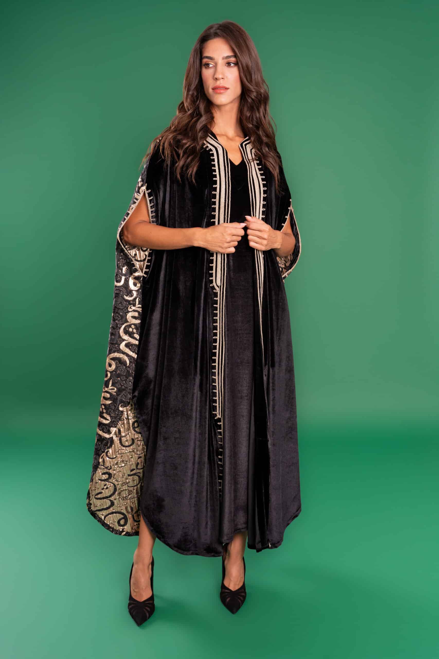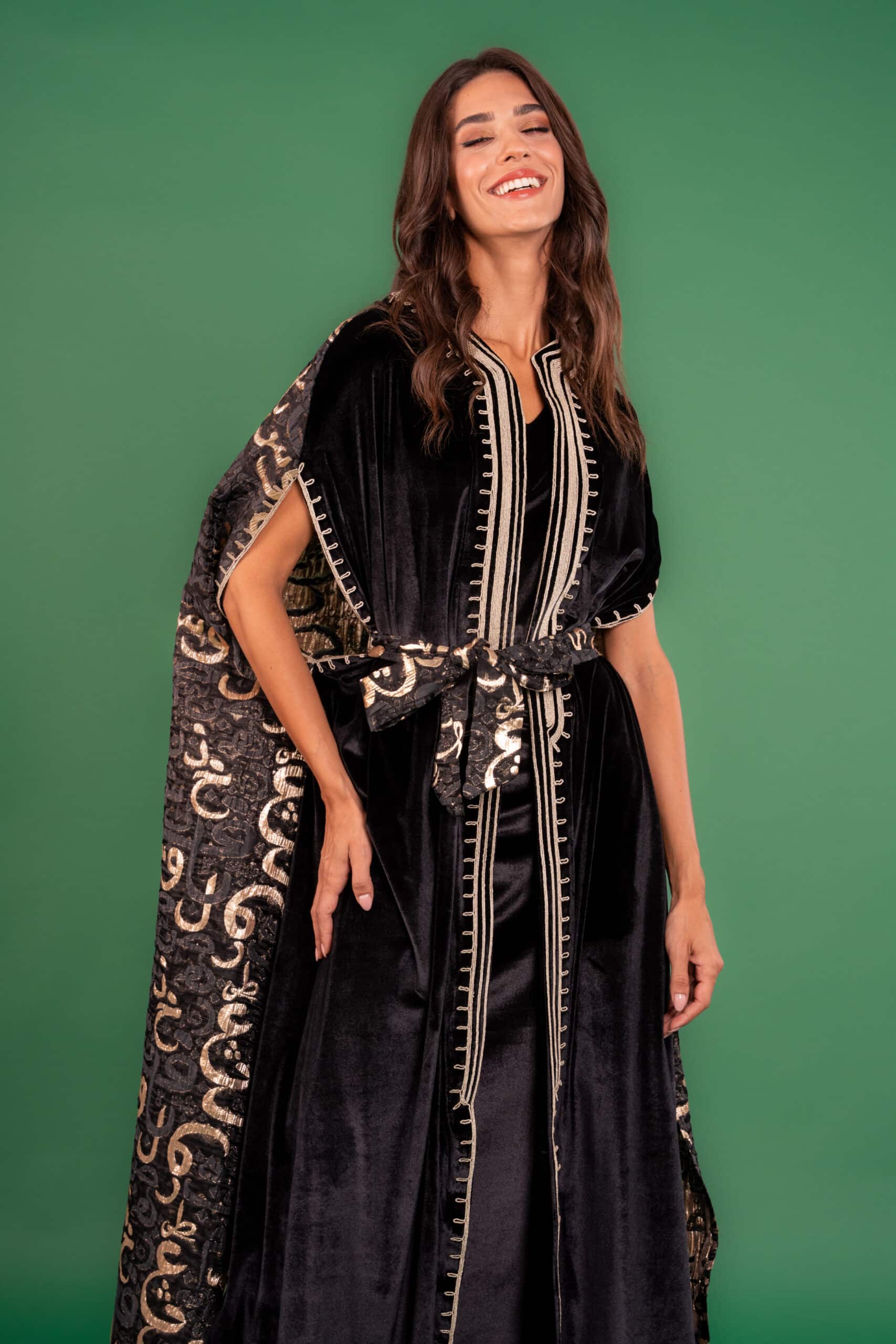 Knot & Flow:: A royal treat. Velvet soft, vibrant hues and intricate Arabic calligraphy. This cape is pure luxury.