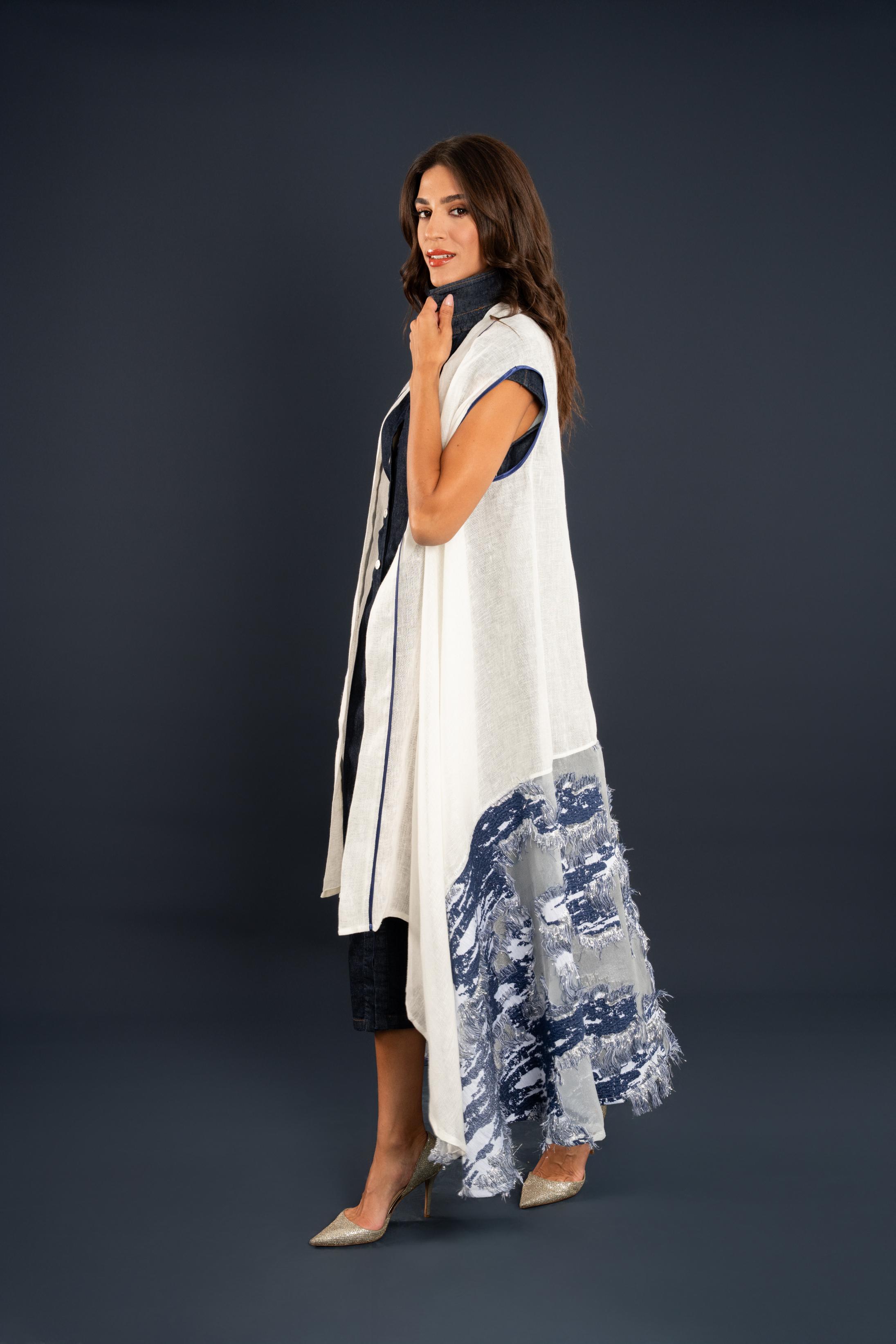 Najm Gilet: Subtle yet striking, this linen-denim gilet captures the quiet shine of a star — versatile, refined, and effortlessly timeless.