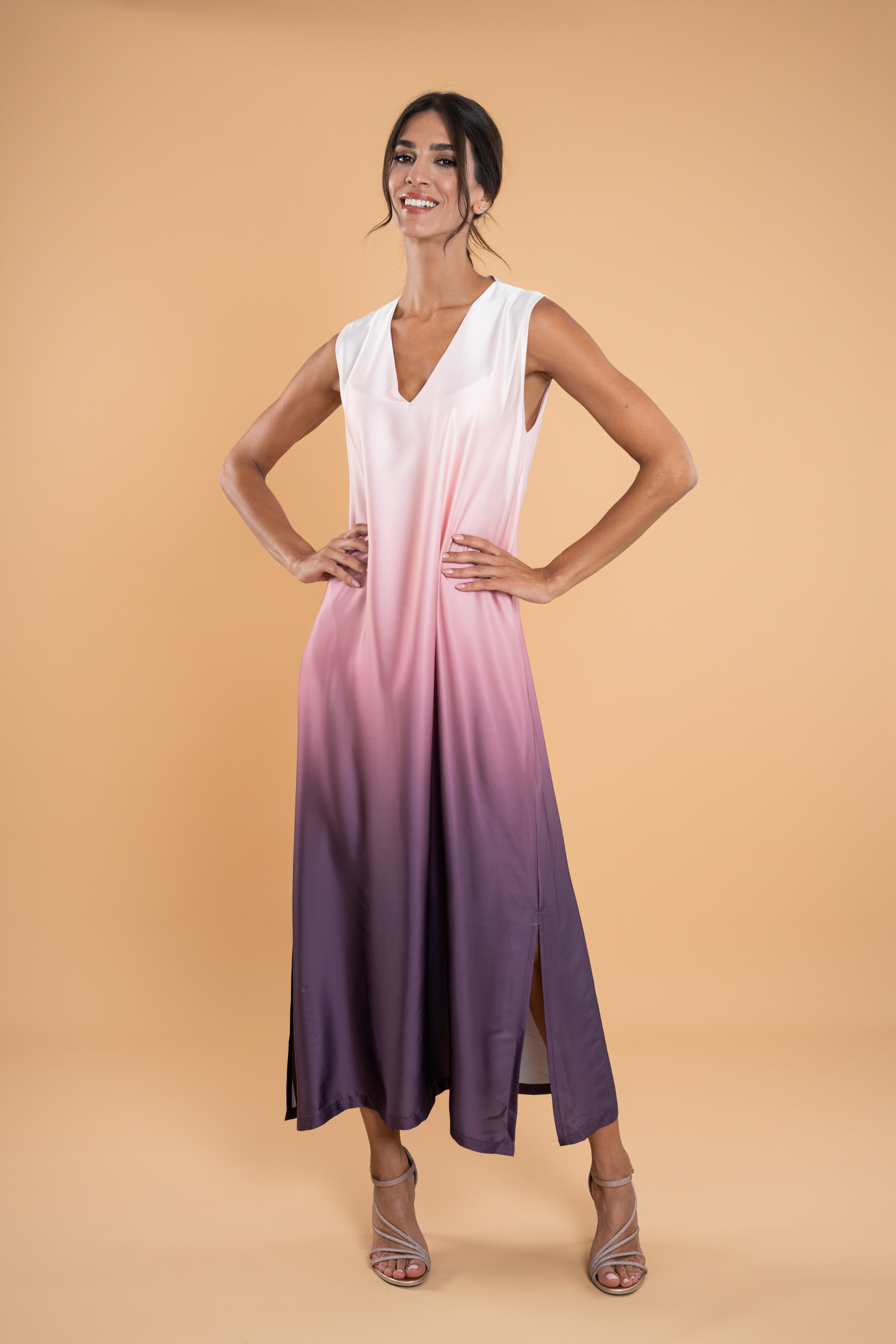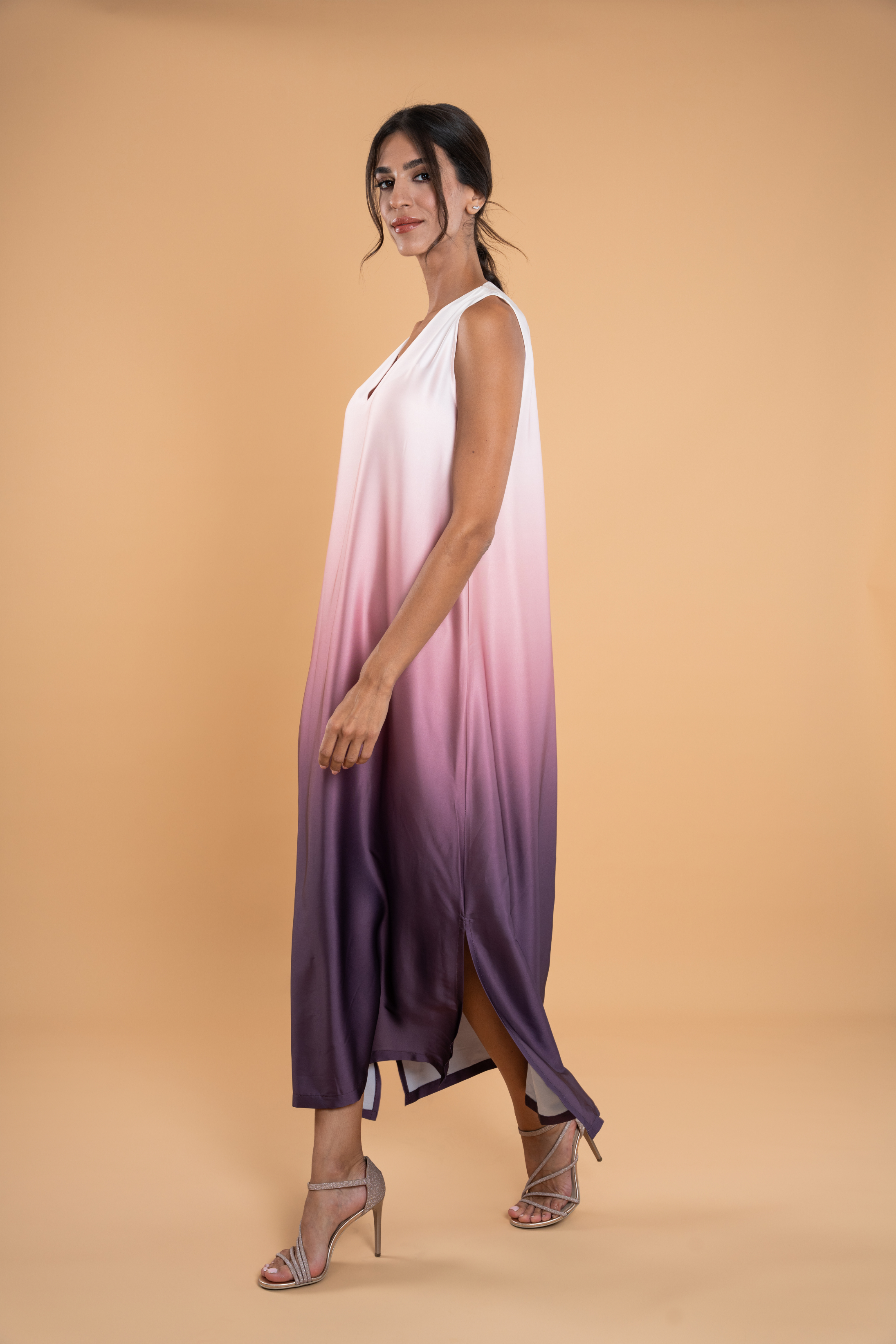Sakina Dress: A vision of calm radiance — this gradient dress embodies effortless grace with its simple lines and tranquil glow.