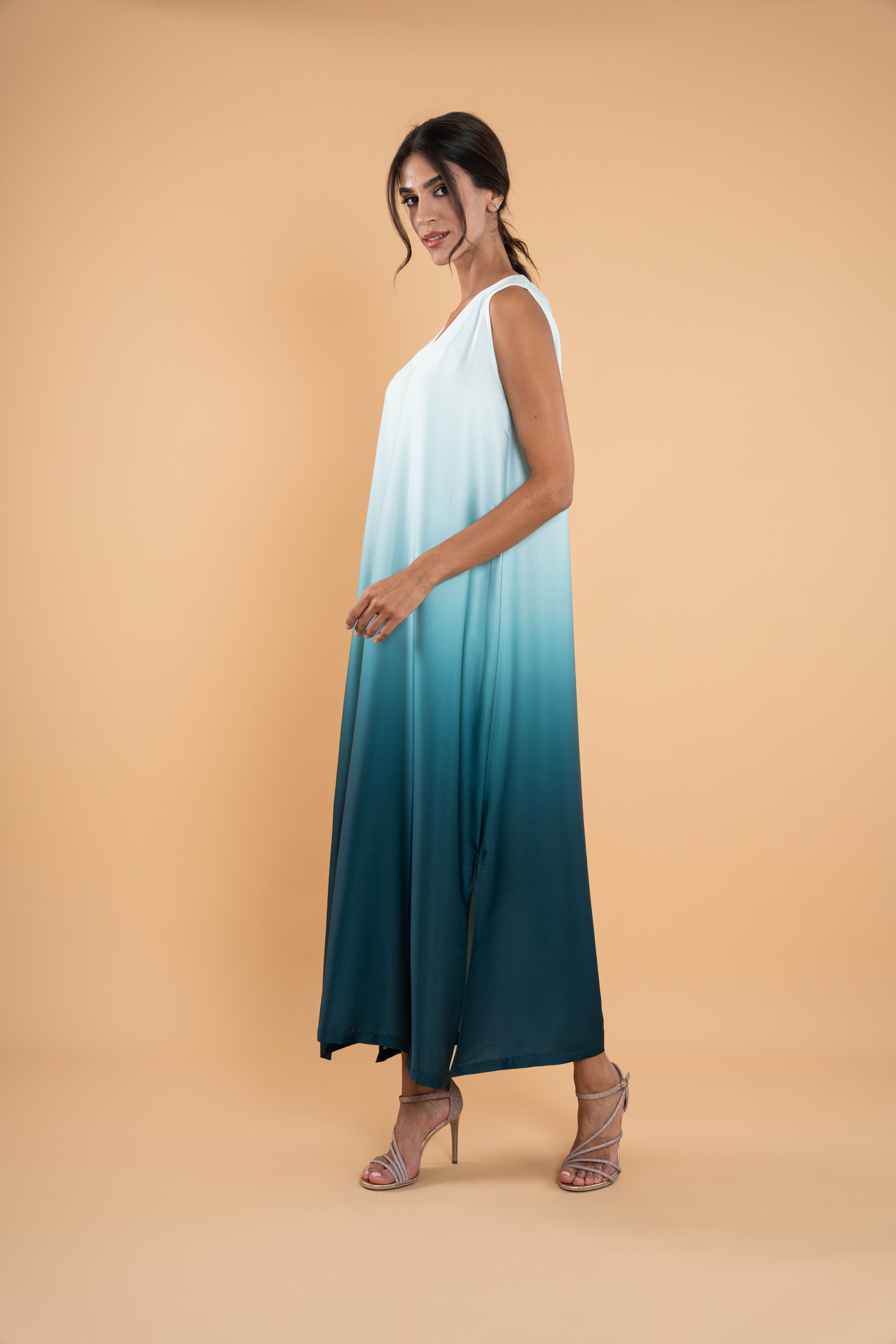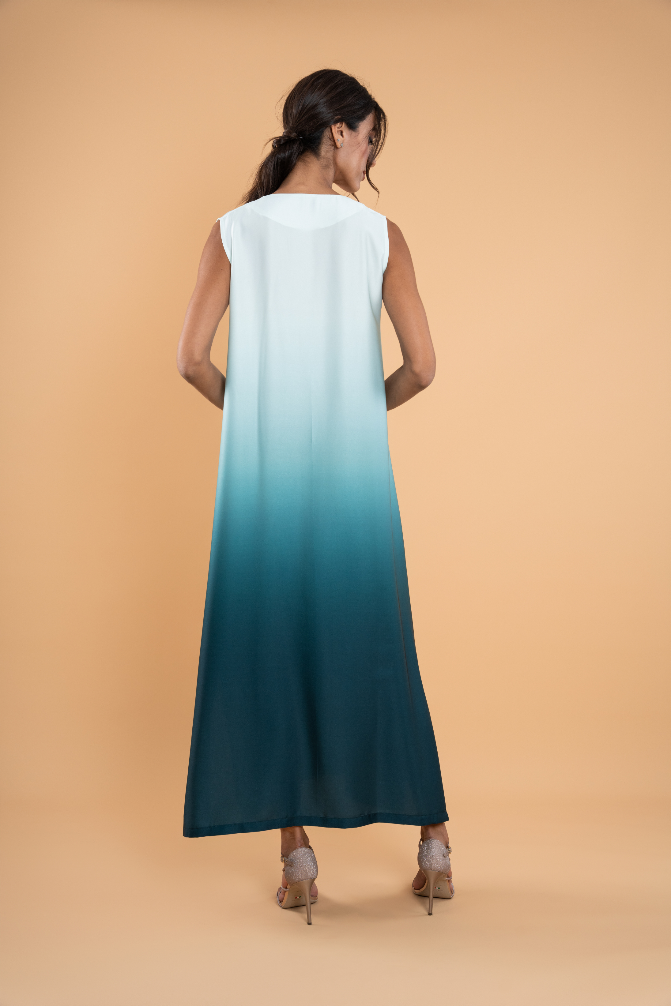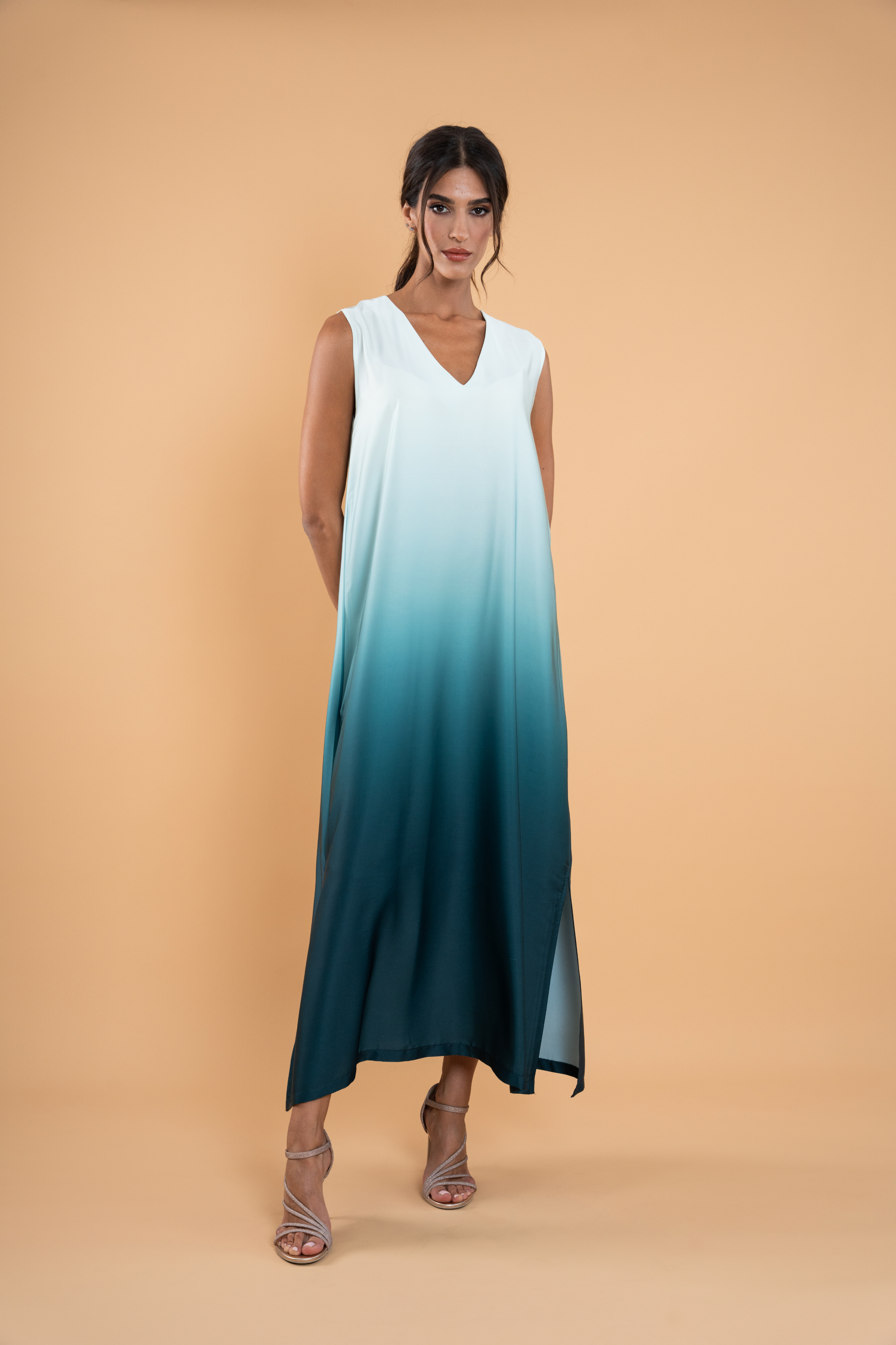 Sakina Dress: A vision of calm radiance — this gradient dress embodies effortless grace with its simple lines and tranquil glow.