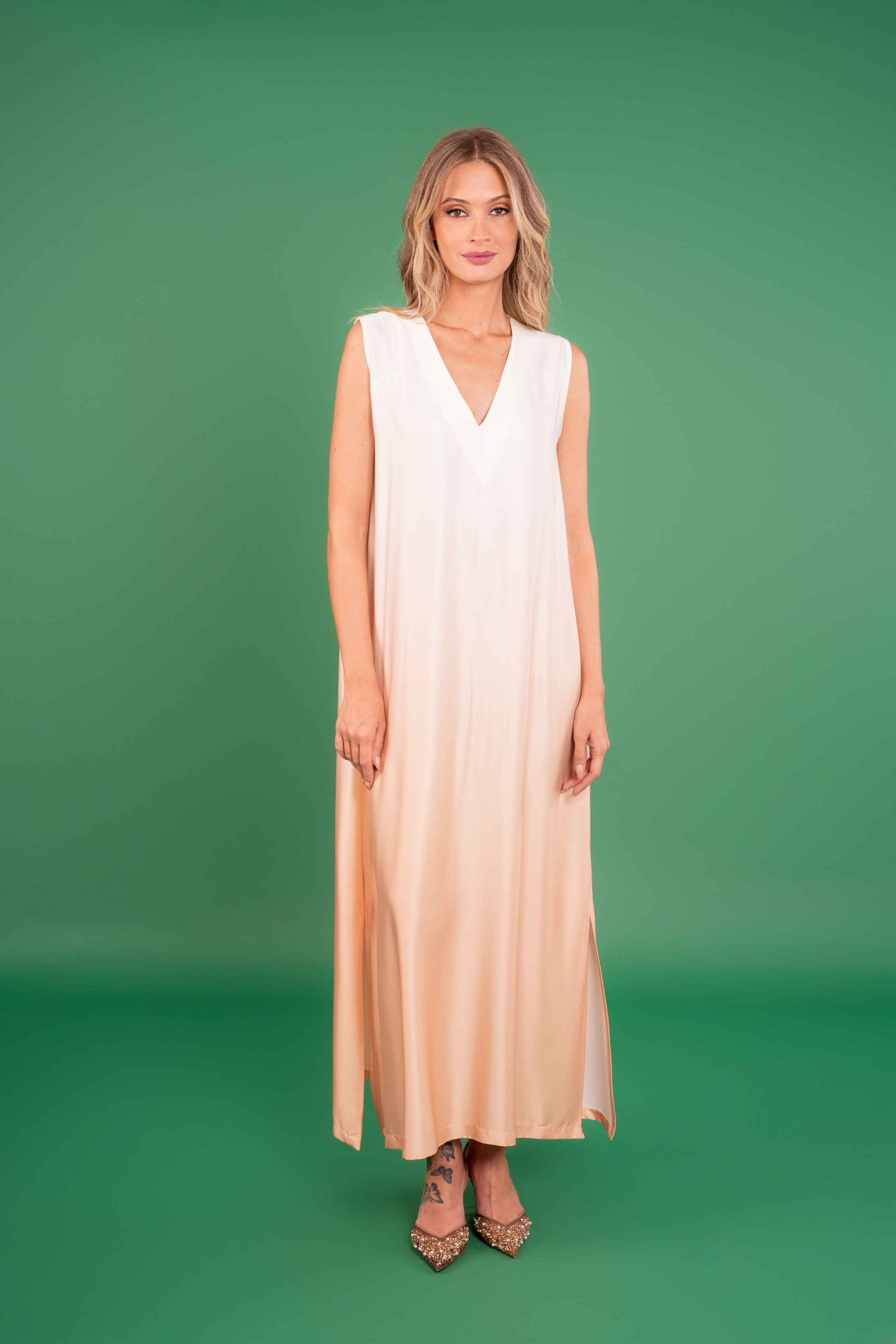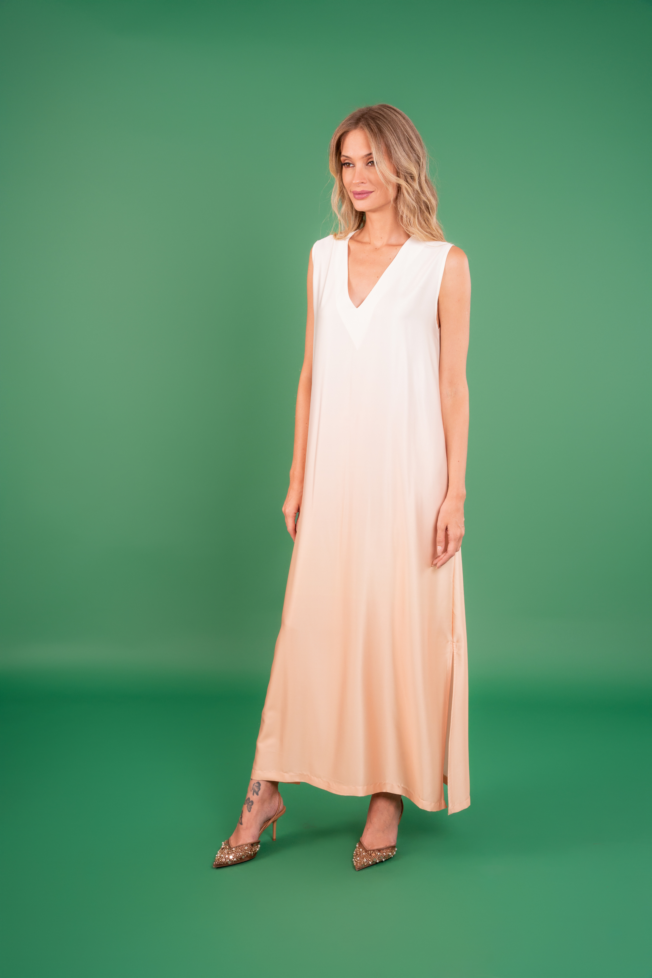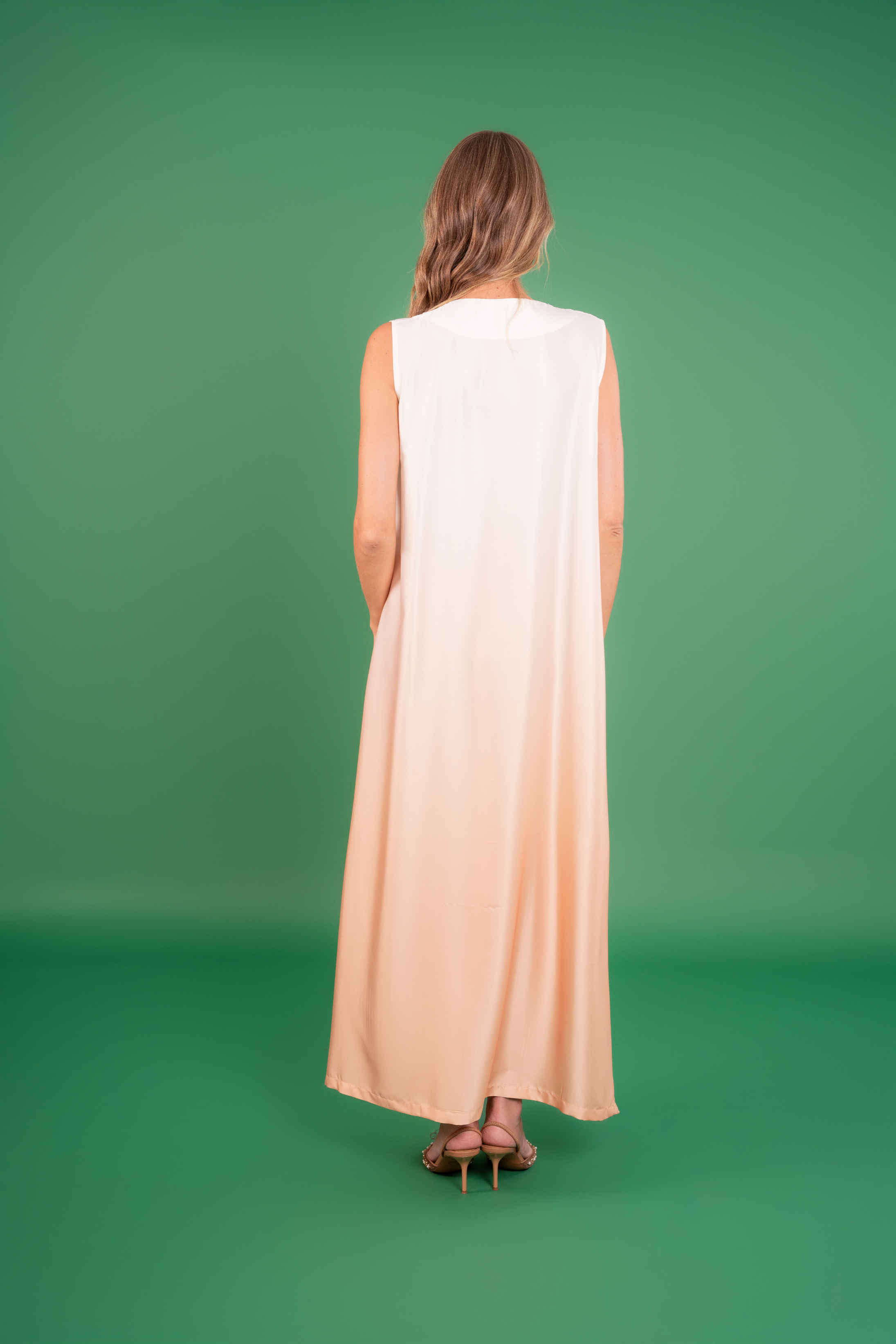 Sakina Dress: A vision of calm radiance — this gradient dress embodies effortless grace with its simple lines and tranquil glow.