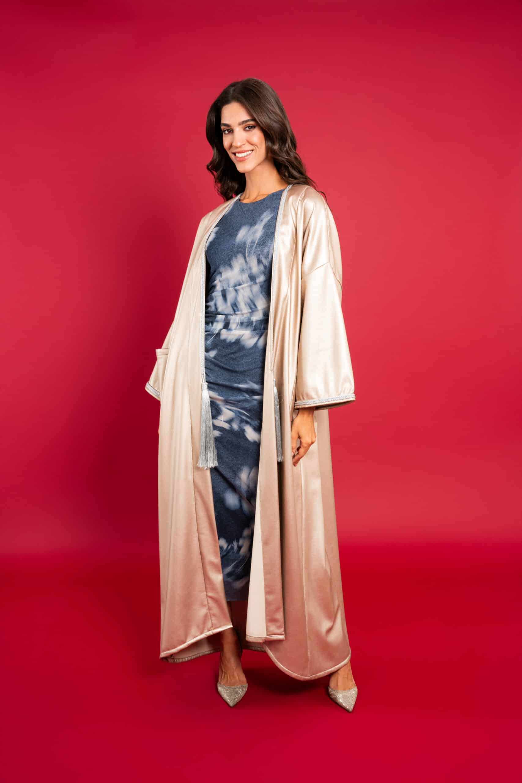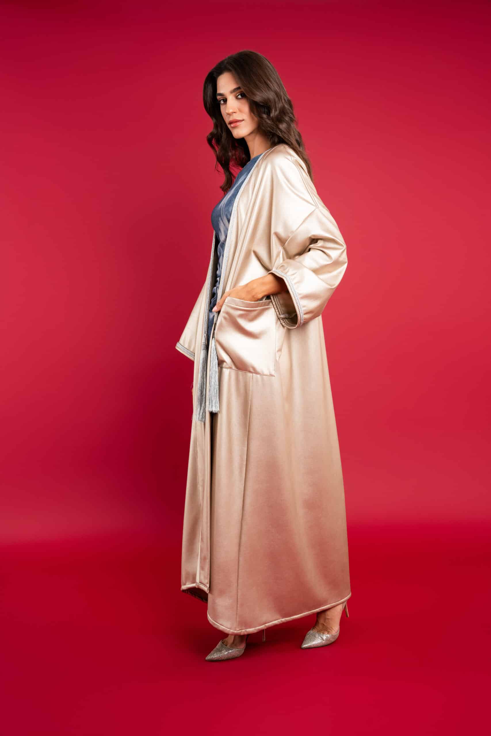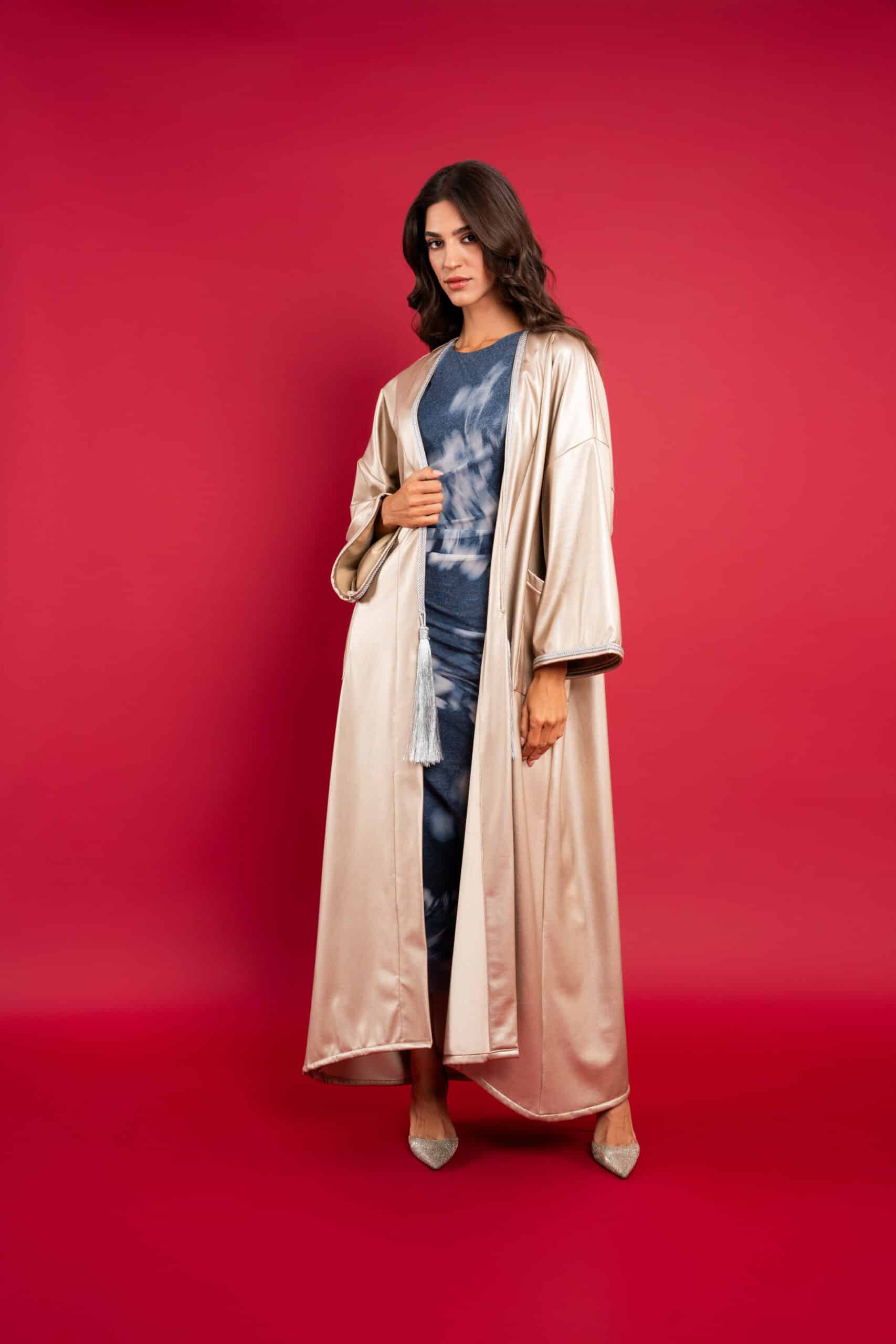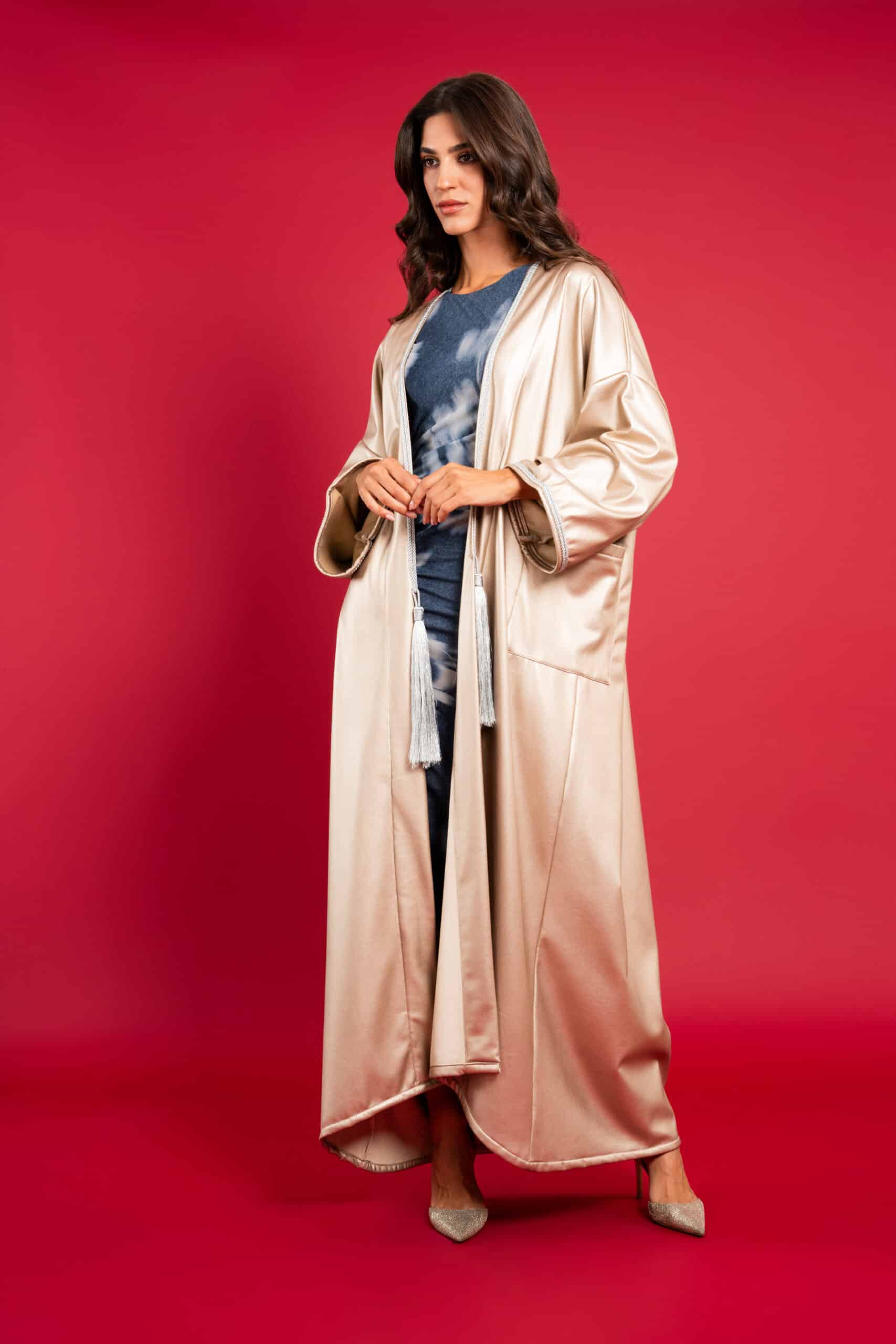 Shade Light: Draped in power — a sleek synthetic leather bisht, cinched with a fringed belt.