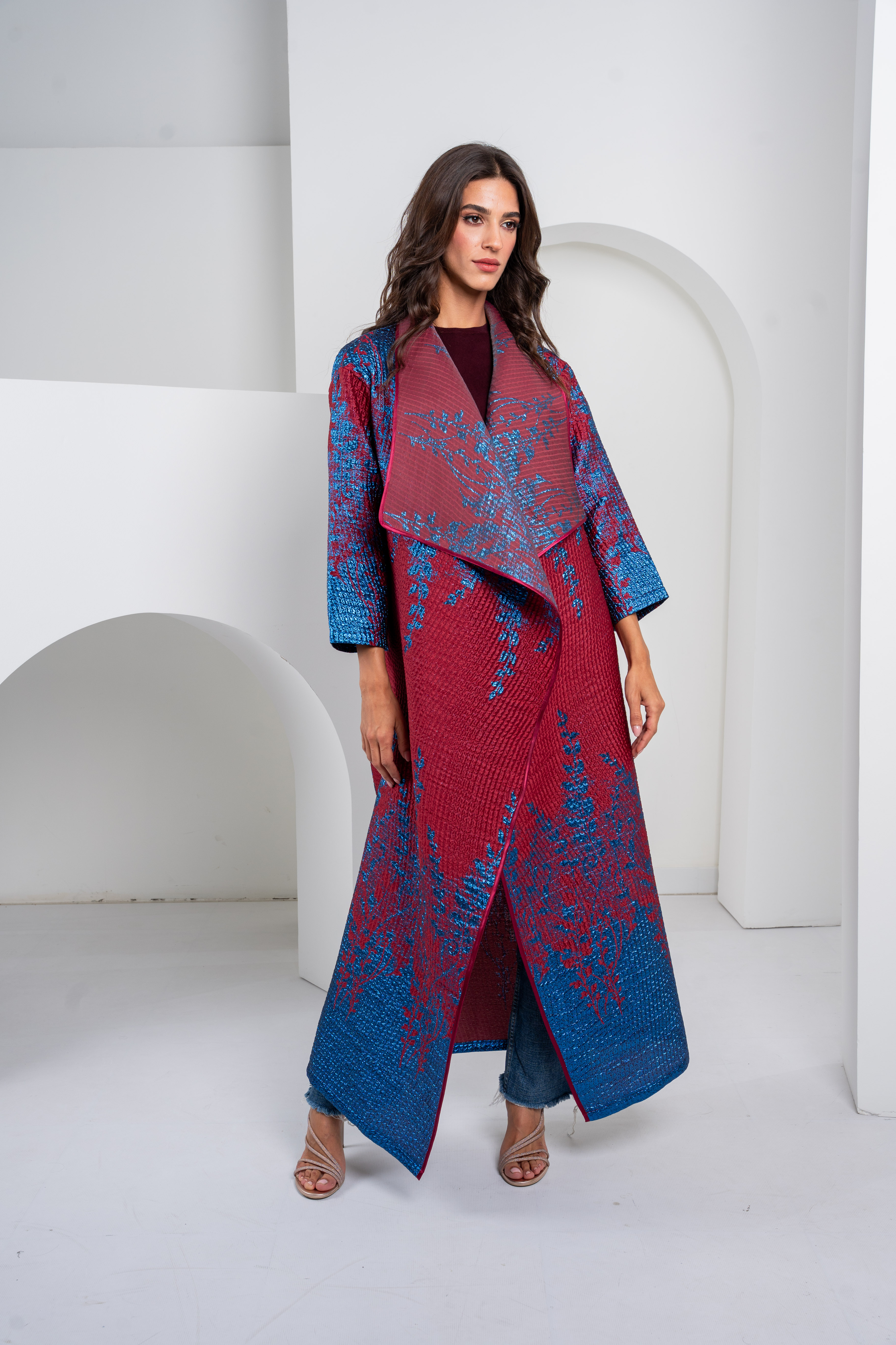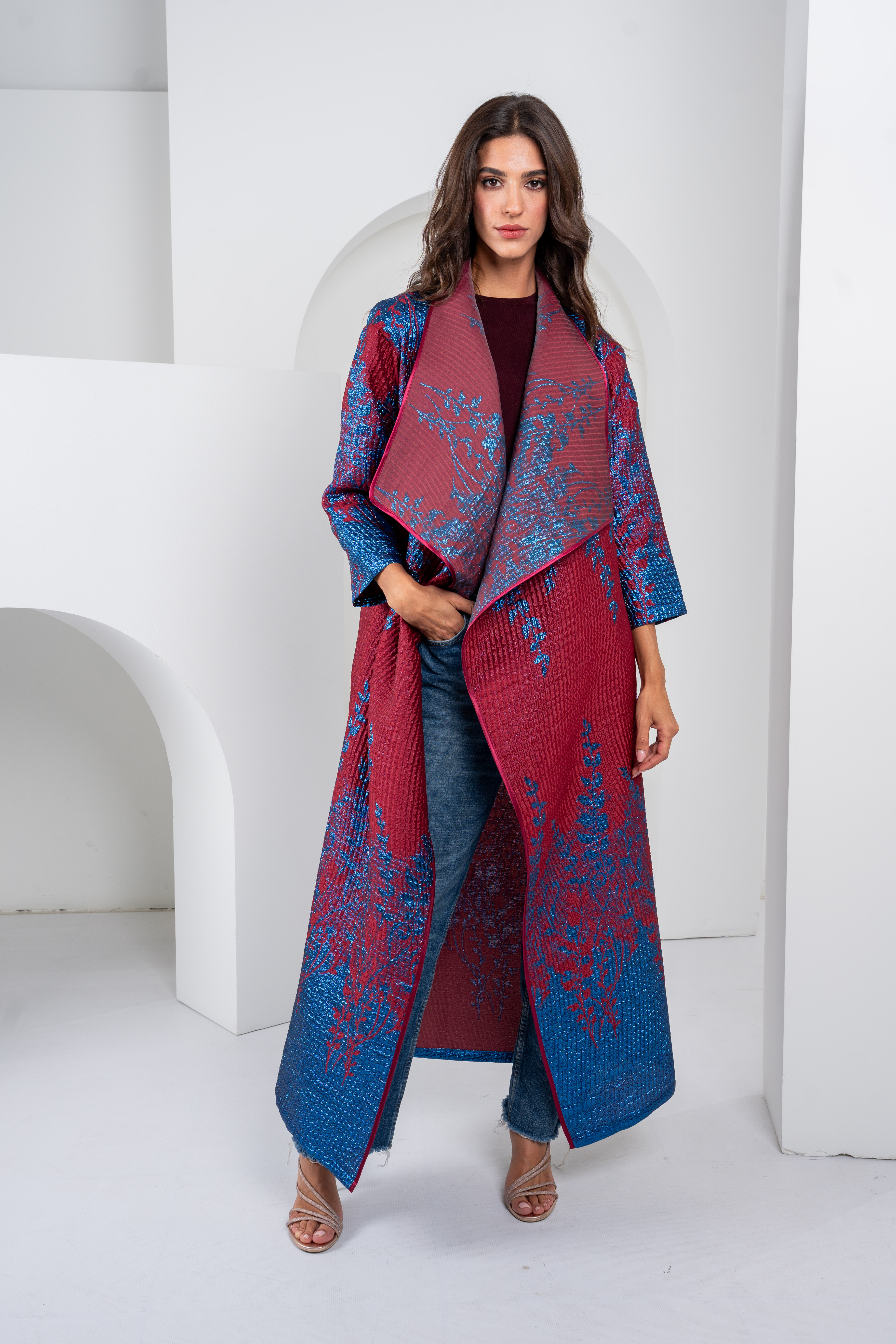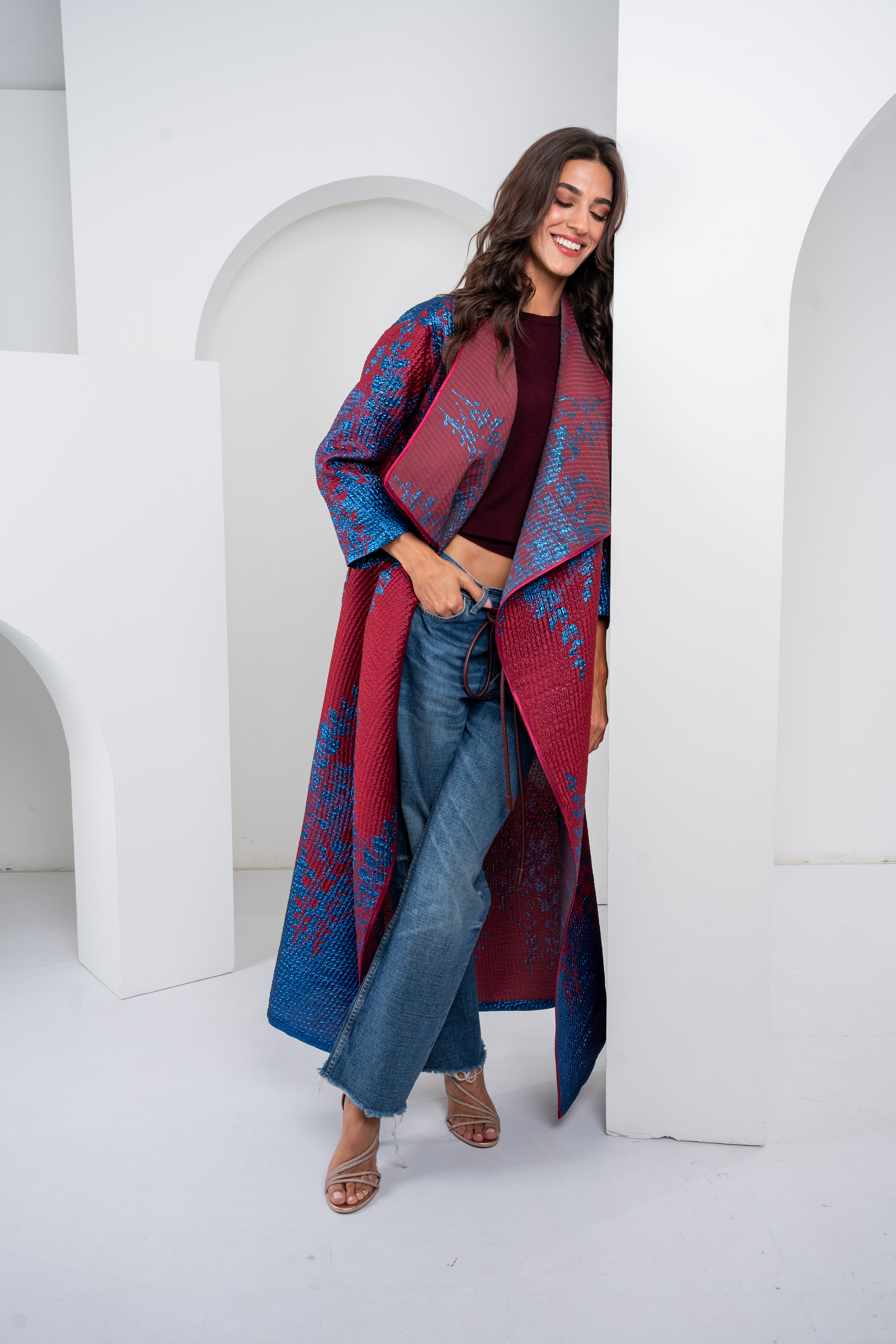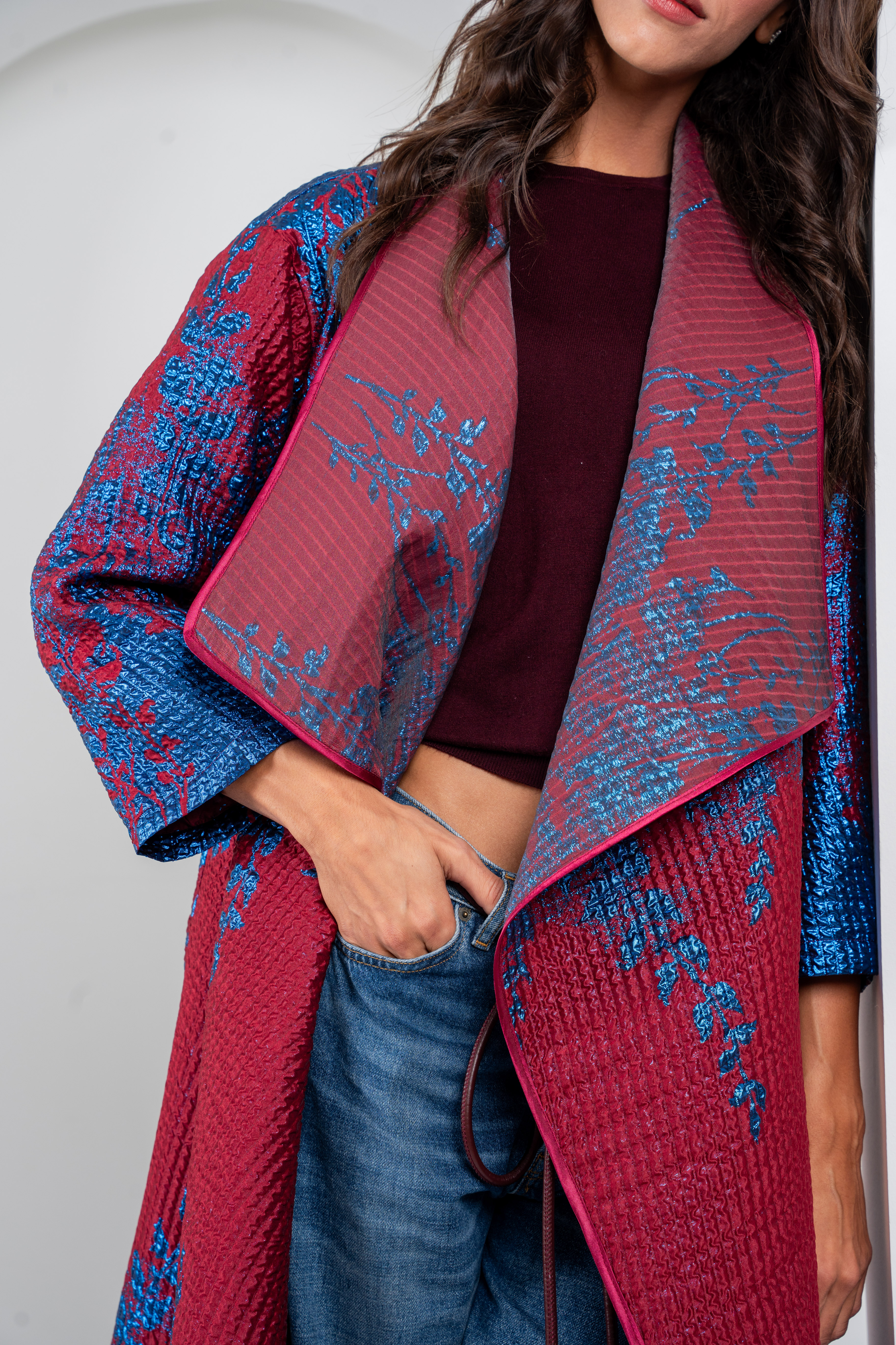 Talj Kaftan: As soft as snowfall, this cozy metallic jacquard kaftan wraps you in warmth and subtle shimmer — serene, luminous, and effortlessly refined.
